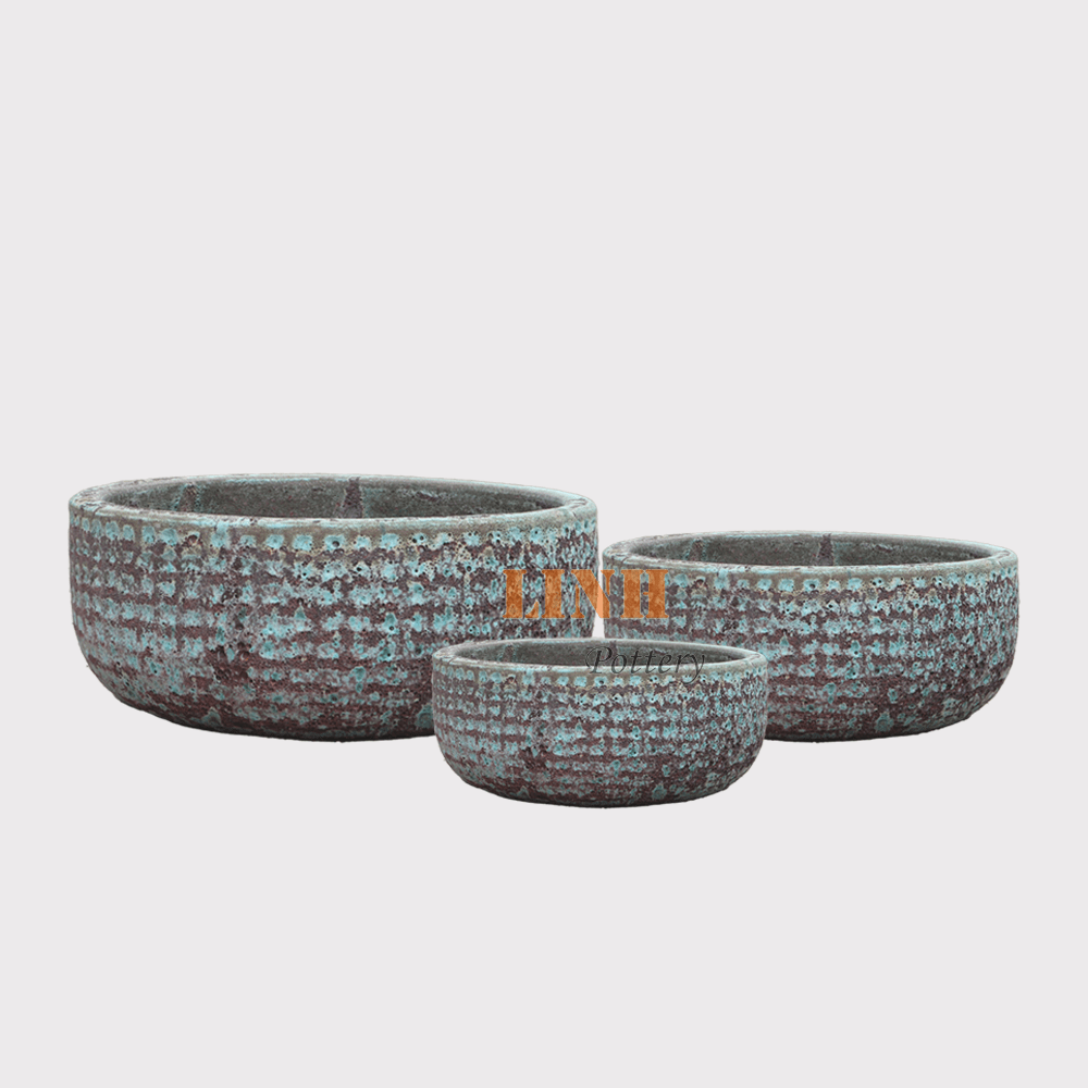 Antique glazed planter set 3 – 140002