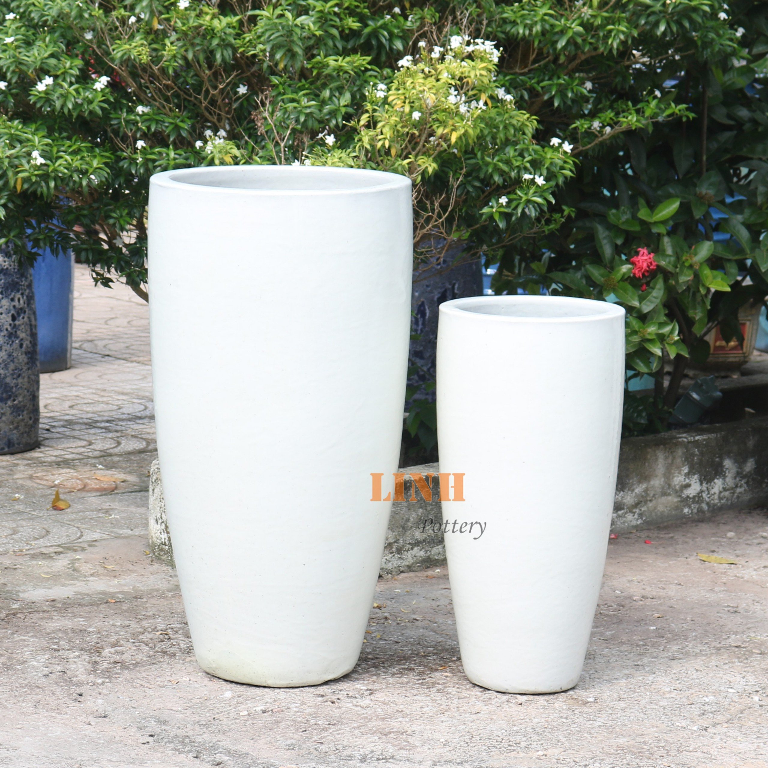 Set of 2 shining glazed ceramic planter
