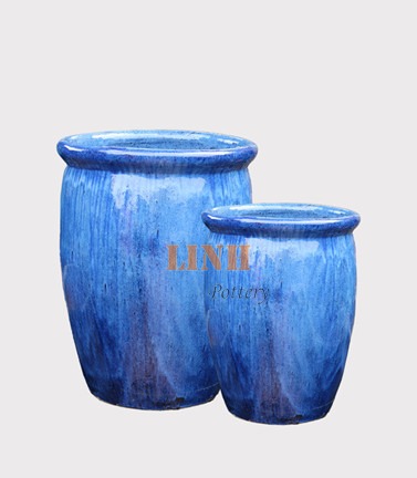 Set of 2 shining glazed ceramic planter