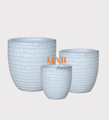 Set of 3 shining glazed ceramic planter