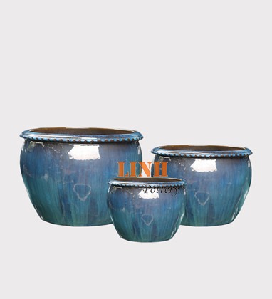 Set of 3 shining glazed ceramic planter