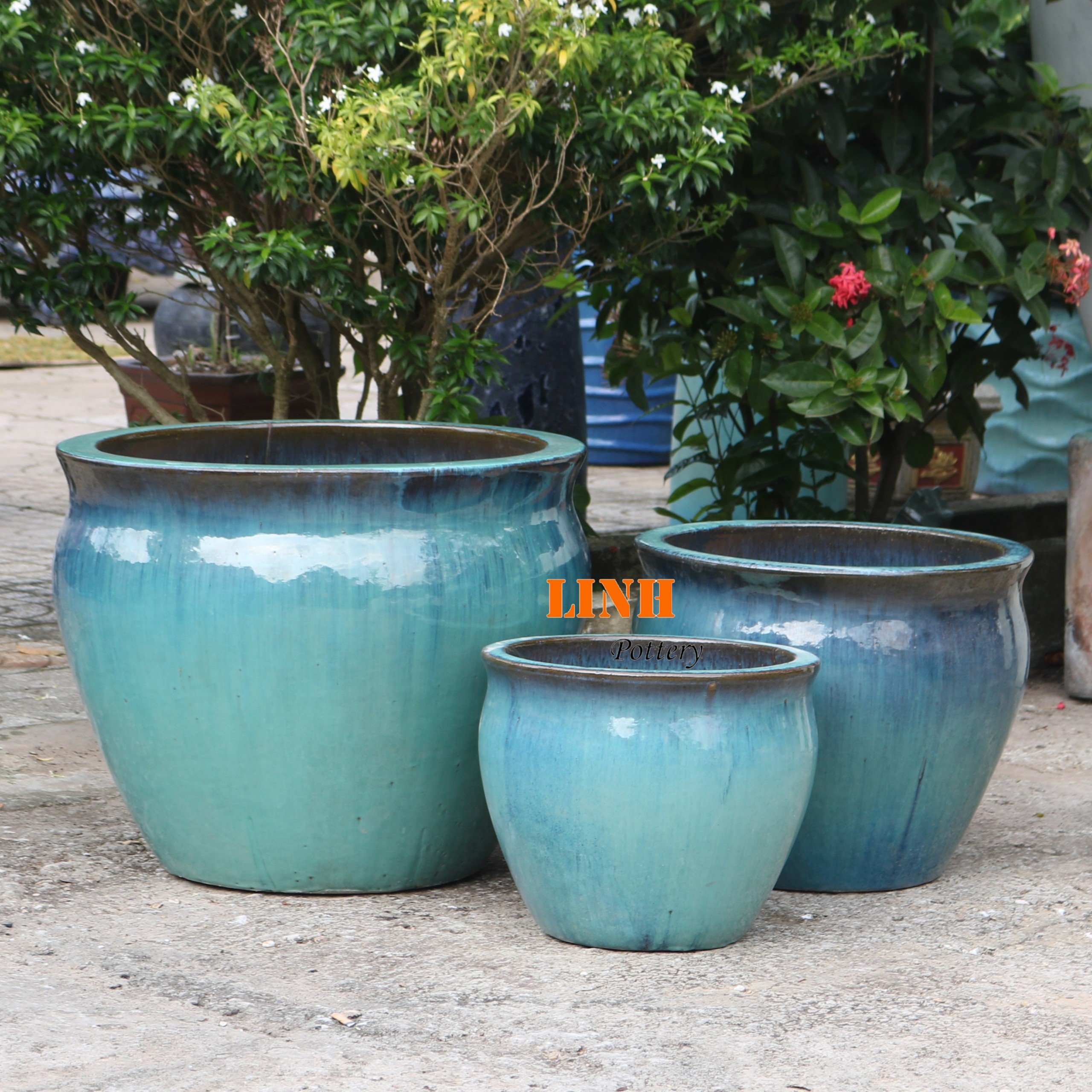 Set of 3 shining glazed ceramic planter