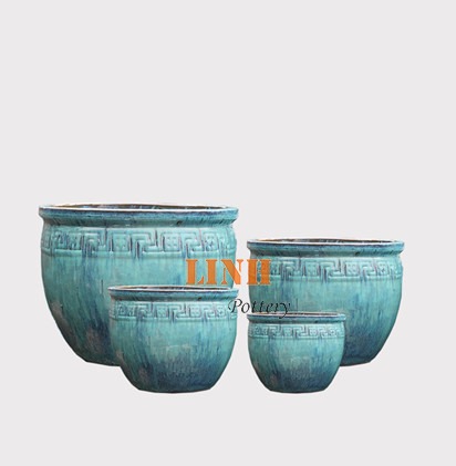 Set of 4 shining glazed ceramic planter